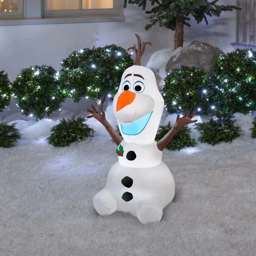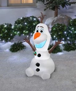- GEMMY Inflatable Olaf makes an eye-catching addition to your fun and playful touch to your holiday outdoor Christmas decorations.