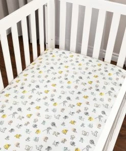 - DESIGN: One fitted sheet features an adorable all over print of classic Disney characters from Dumbo, Aristocrats, 101 Dalmatians, Lion King, Bambi and Lady and the Tramp and the other features a coordinating grey geometric pattern, making it simple to mix and match! The fitted sheets are fully elasticized for a snug fit