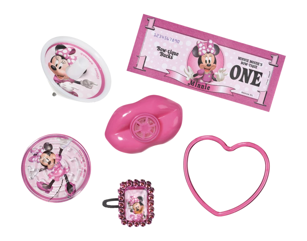 - This favour pack includes maze puzzles, rings and other party favours featuring Minnie in a bright pink colour palette
