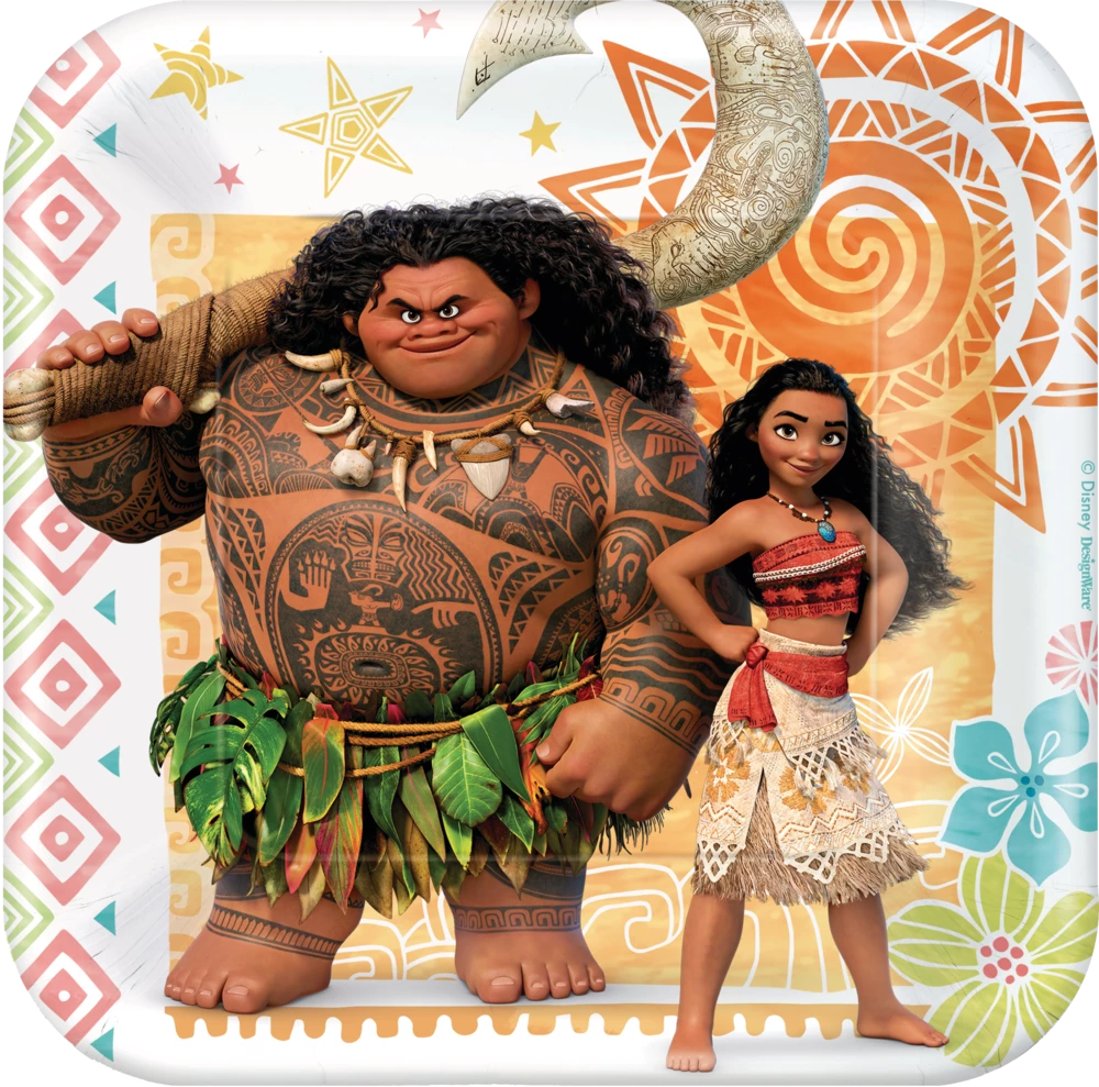 - Moana Dessert Plates feature Maui, the demigod, and his fish hook standing next to Moana