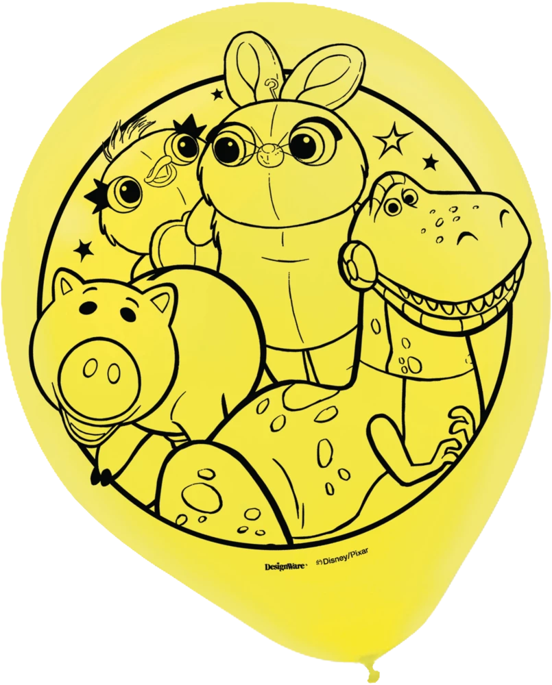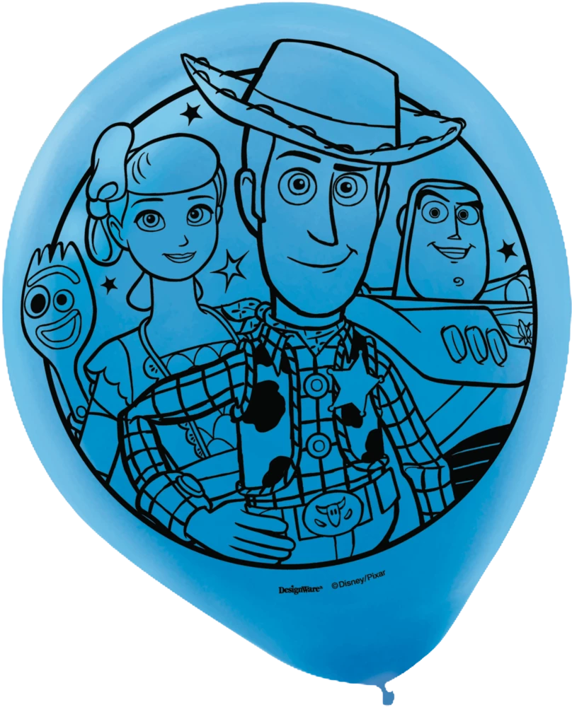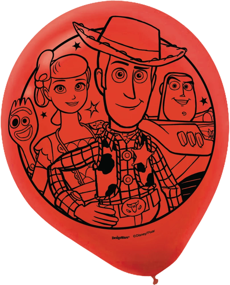 - Toy Story 4 Balloons come in blue, red, and yellow and feature Woody, Buzz Lightyear, Bo Peep, and other characters from the movie