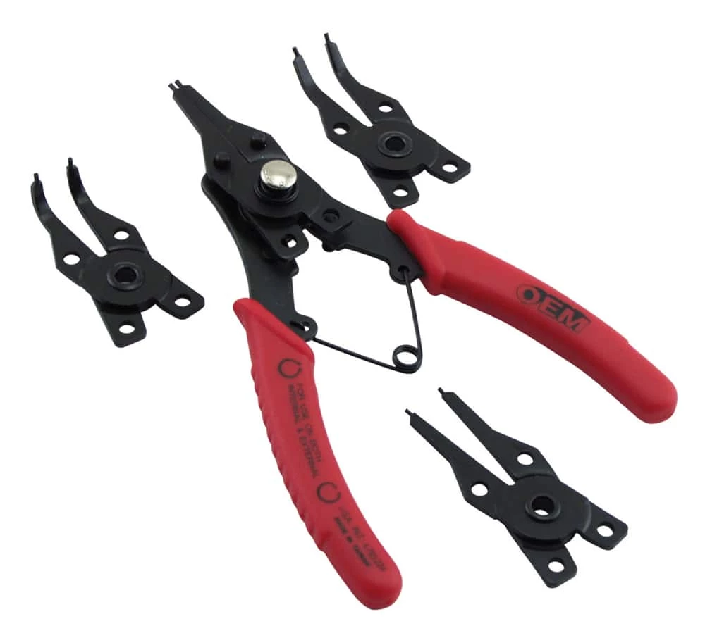 The OEMTOOLS® 4-in-1 Combination Snap Ring Plier Set is designed to quickly remove and Install internal and external snap rings. This plier set features 4 interchangeable jaw configurations for a variety of applications.