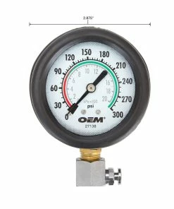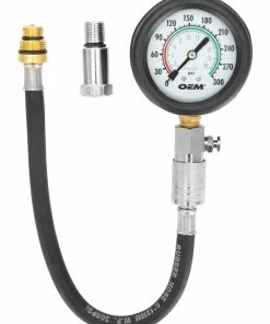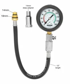 - OEMTOOLS Compression Tester Gauge Set tests compression 0-300 PSI on 14mm and 18mm spark plug ports (engine compression) and determines engine mechanical condition