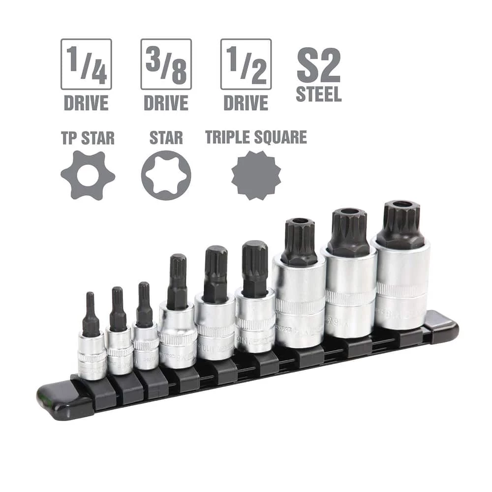 - OEMTOOLS Triple Square Bit Set includes square bits made with S2 steel and chrome vanadium steel sockets for strength and durability