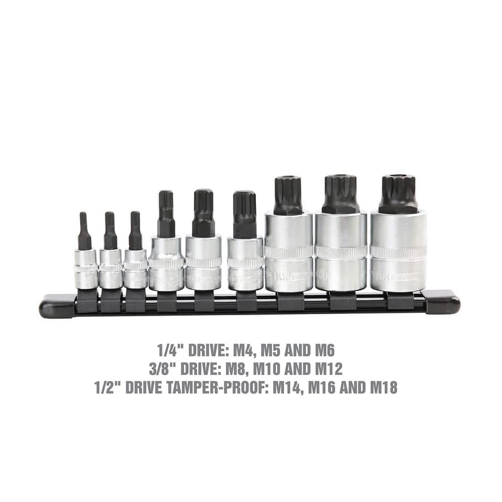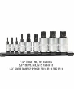 - Includes: 1/4″ drive – M4, M5 and M6 (length: 37mm), 3/8″ drive – M8, M10 and M12 (length: 48mm), 1/2″ drive tamper-proof – M14, M16 and M18 (length: 55mm)